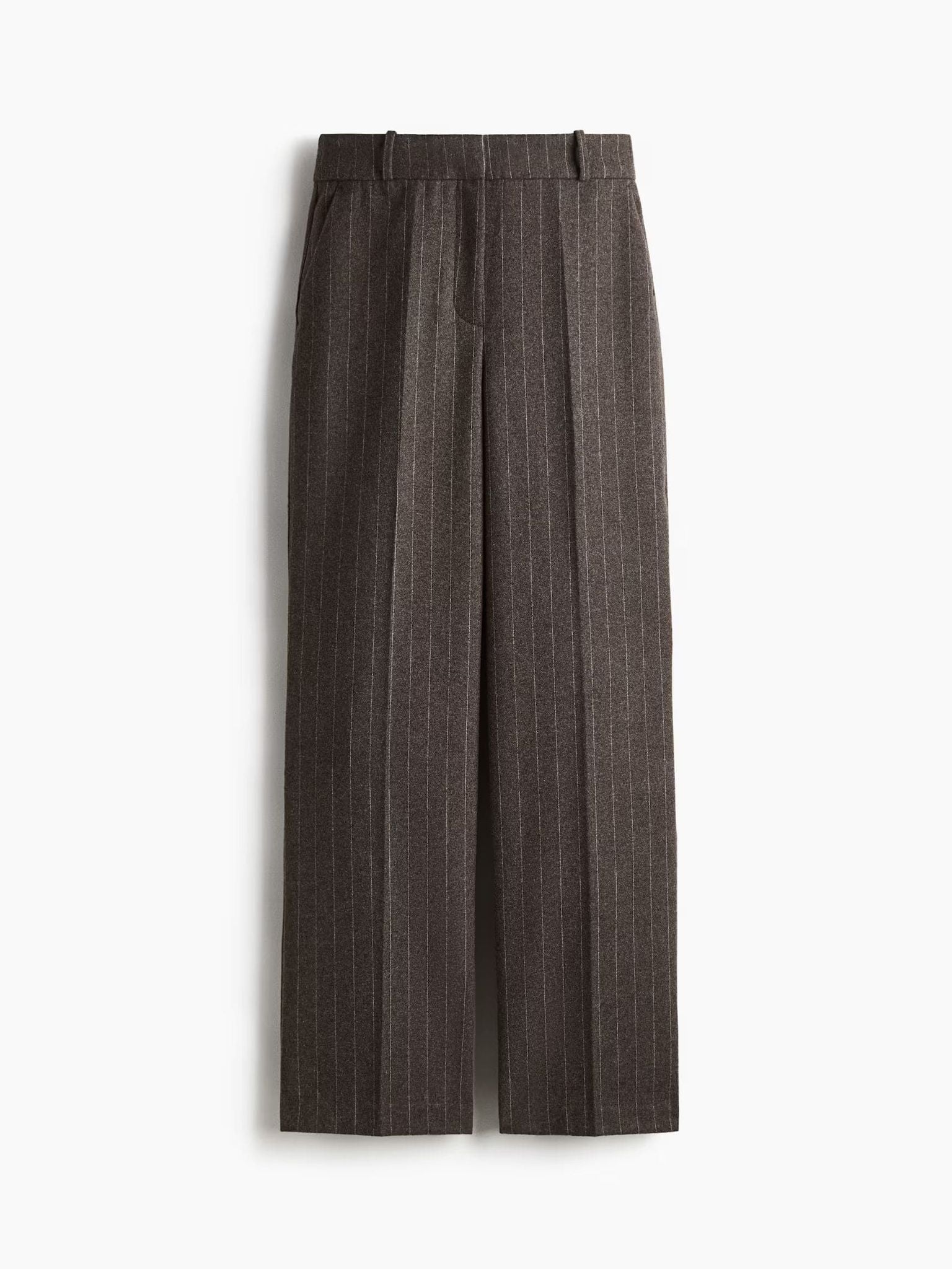 - Silhouette harmonieuse — un gilet doux et structuré associé à un pantalon fluide qui allonge la ligne.