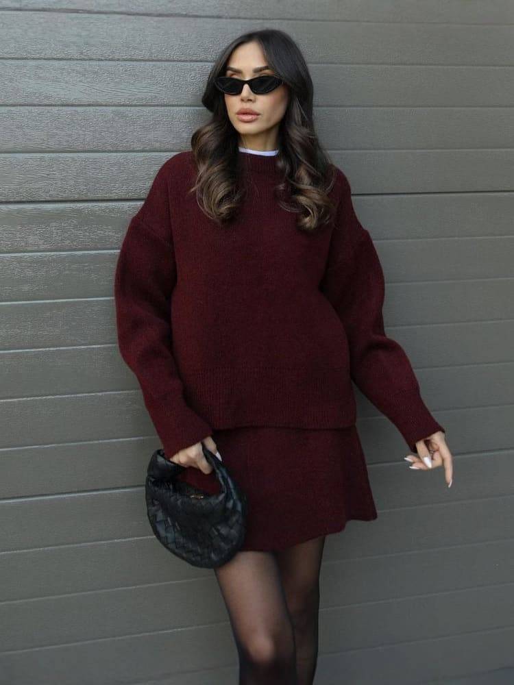 Alliant style et confort, l’ensemble Lara est une pièce essentielle pour l’automne et l’hiver. Son tricot fin et moelleux, sa coupe décontractée et son design minimaliste offrent un look chic sans effort. Le pull à col rond et la jupe assortie créent une silhouette féminine et élégante — parfaite pour une journée cosy ou une soirée raffinée.