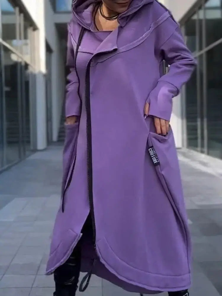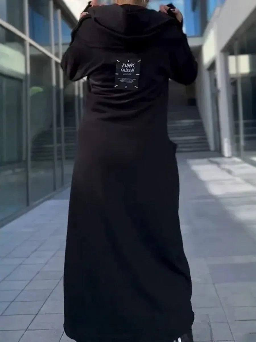 Longue hoodie zippée noire pour femme - style urbain et confort